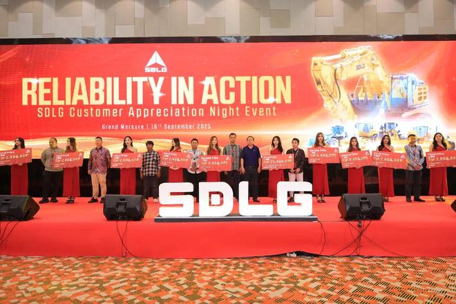在展会开幕前夜,山东临工于雅加达隆重举办“临工之夜”客户答谢暨产品促销会,超过240位嘉宾共聚一堂。活动现场,不仅回顾了公司的发展历程与行业成就,为与会客户展示了临工产品在可靠性、节能环保及本地化服务等方面的突出优势,更在现场推出了专项促销政策,配合抽奖环节,将气氛推向了高潮。“临工之夜”以签单逾百台设备的丰硕成果,为次日的展会奏响了精彩前奏。