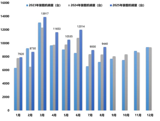 据中国工程机械工业协会统计数据显示,2025年8月份,挖掘机主要制造企业销售各类挖掘机16523台,同比增长12.8%;其中国内销量7685台,同比增长14.8%;出口量8838台,同比增长11.1%。2025年8月份,装载机主要制造企业销售各类装载机9440台,同比增长13.3%。其中国内销量4774台,同比增长18.3%;出口量4666台,同比增长8.69%。